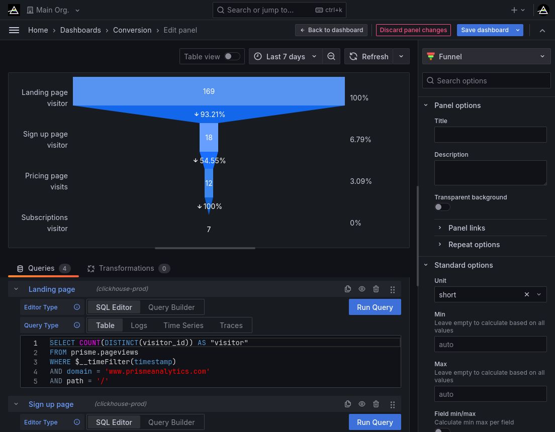 Prisme Analytics is built on top of state of the art Open Source data visualization and storage, respectively Grafana and ClickHouse.
